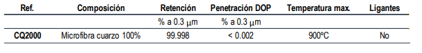 Cartuchos microfibra de cuarzo