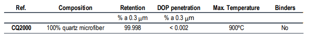 Quartz microfiber filters