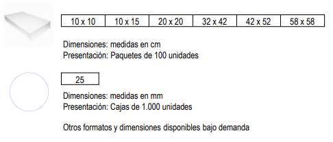 Absorción de líquidos, transporte de muestras y otros ensayos específicos